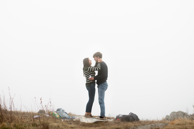 After hiking a short trail to the top of Black Balsam Knob, we laid out a blanket and sat there to catch our breath. A few minutes later, I told Josh and Megan that Austin and I were going to scout out where to do their photos. While Austin and I hid in the bushes a few feet back, Josh got down on one knee and asked Megan to spend the rest of their lives together. Her answer was immediately "YES!!" and after a few minutes, we ran out to congratulate them both!